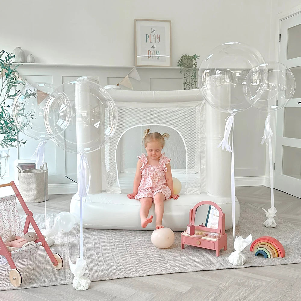 Create endless fun at home with this compact inflatable children’s castle, designed for safe indoor and outdoor play. Made from durable PVC and equipped with a built-in air pump, this bounce house inflates quickly with no external blower required.